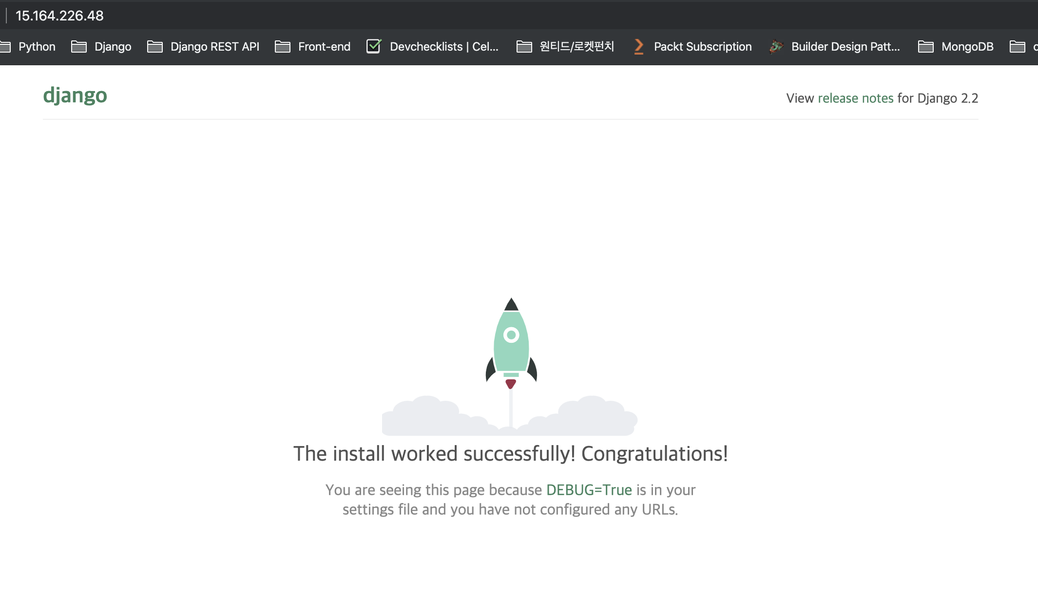 # settings.py의 ALLOWED_HOSTS = ['*'] # 가상화 상태(venv)/var/www/myproject/src: pip install django==2.2 django-admin startproject config . # local ip localip=$(hostname -I | cut -f1 -d' ') echo $localip >> 172.31.43.59 # ->(private ip) # myproject.sock 확인 ls >>config manage.py myproject.sock systemctl daemon-reload systemctl reload nginx # gunicorn을 이용한 django 실행 gunicorn config.wsgi # gunicorn 설정 변경 후 재시작 supervisorctl restart myproject_gunicorn