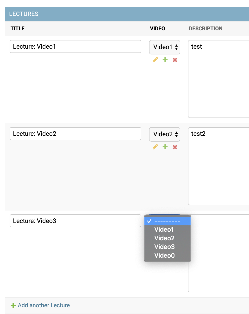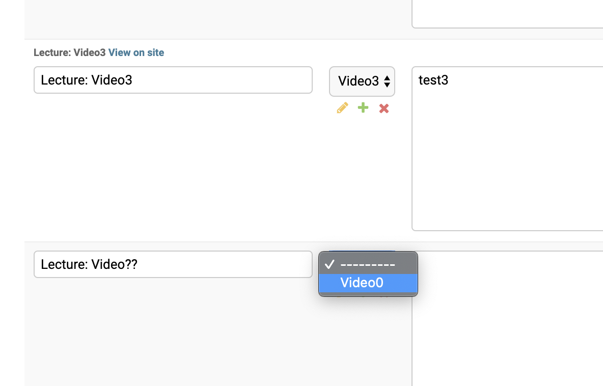 - 강좌(Lecture)를 생성할 때 이미 등록된 동영상(Video)은 목록에 표시되지 않도록 Form에서 동적으로 ForeignKey를 제한한다.