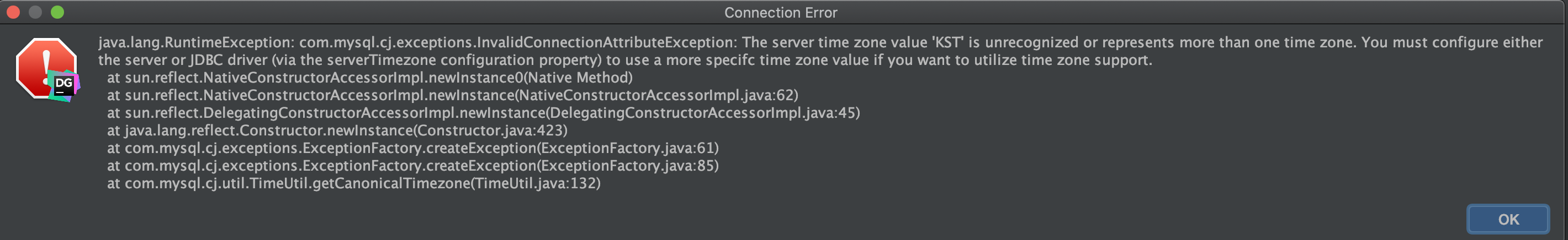 The server time zone value 'KST' is unrecognized .....
